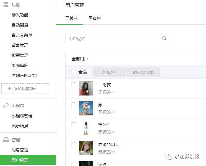 可以看到哪些人關(guān)注了公眾號(hào),可以進(jìn)行分組等操作