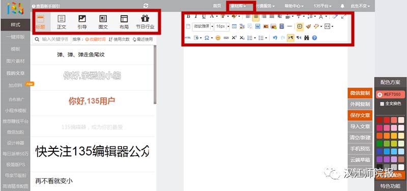 2、在135微信編輯器里制作,最后全部復(fù)制到公眾號(hào)里
