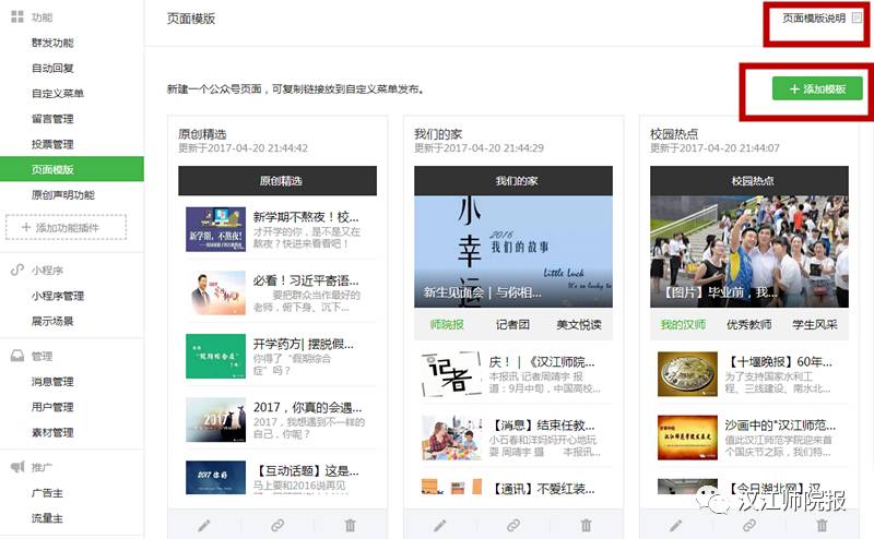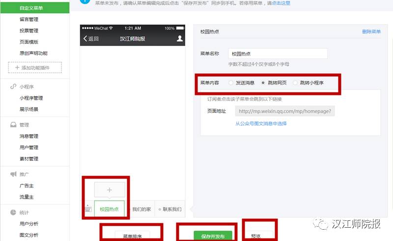 ·一級(jí)菜單和二級(jí)菜單都可以關(guān)聯(lián)相應(yīng)的內(nèi)容(素材庫(kù)文章、歷史消息、頁(yè)面模板),根據(jù)需要設(shè)置,引導(dǎo)閱讀