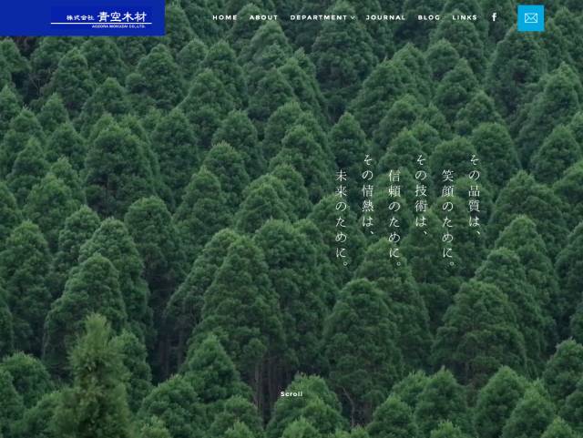 青空木材網(wǎng)站的主圖中,背景使用郁郁蔥蔥的森林,文案則選擇輕薄的字體和錯(cuò)落的排列形式,形成大小對比與氛圍對比,給人留下深刻的印象。