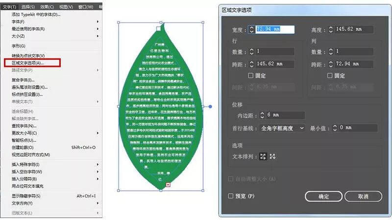在菜單欄文字選項(xiàng)中點(diǎn)擊區(qū)域文字選項(xiàng),即可調(diào)出參數(shù)框,如下圖: