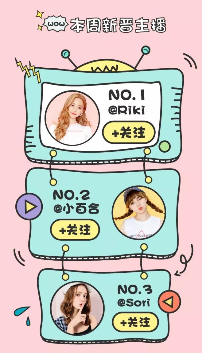 ▲用電視機(jī)圖形排列主播頭像和介紹文字
