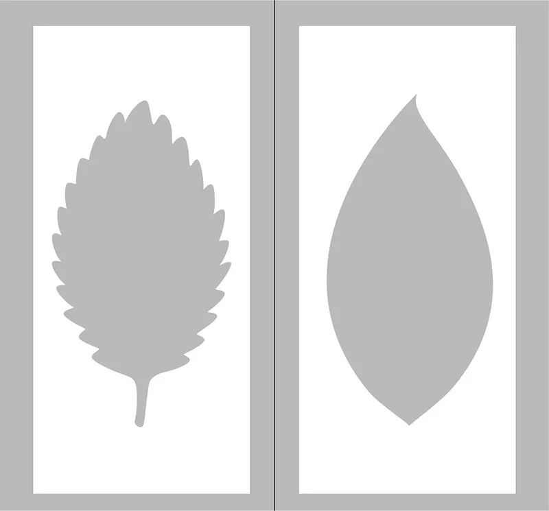 即使確定了采用什么圖形來排版也還有很多要注意的地方,比如同樣一個(gè)元素,可以設(shè)計(jì)成很多不同的圖形,它們所產(chǎn)生的效果也會(huì)有很大差別。一般來說,抽象的、幾何化的圖形會(huì)比具像化的圖形更合適,因?yàn)榍罢吒啙?、更適合排版、更有設(shè)計(jì)感,下圖是樹葉圖形的兩個(gè)不同設(shè)計(jì)方向。