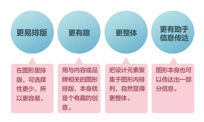 所謂圖形排版法,即用圖形承載文字或圖片,這樣排版的好處有: