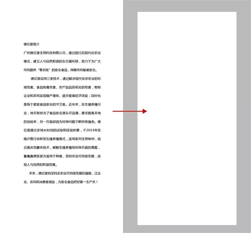 客戶只提供了這些文字,從上圖可以看到,字?jǐn)?shù)并不少,且都是關(guān)于企業(yè)介紹的段落文字,顯然這些文字要集中排版,不過如果只是像上圖那樣簡單的對(duì)齊,未免有點(diǎn)單調(diào),最好引入圖片或者圖形加以豐富,由于沒有合適的圖片,所以我決定采用圖形排版法。