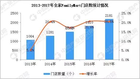 全家2004年進(jìn)入中國大陸,截止2017年底門店數(shù)是2181家。今年如果增長20%,便是2617家,增長10%是2400家,所以大致在2500家上下。