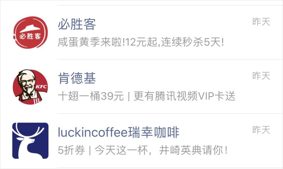 比如淘寶、京東等電商經(jīng)常會推滿減活動,限時秒殺,領(lǐng)券立減等活動,相信大家都不陌生了。而微信讀書這樣的 App 則會推“書籍免費限時領(lǐng)”的 Push。還有我很久沒用的瑞幸咖啡最近一直在用優(yōu)惠券“誘惑”我。