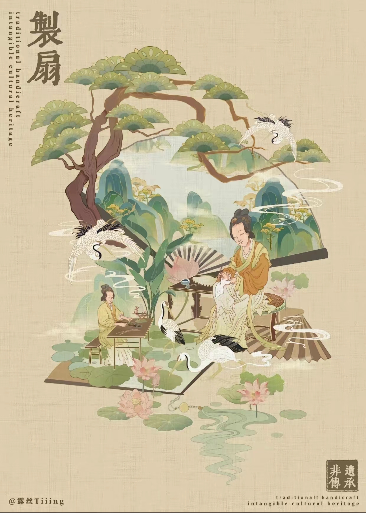 后由種種原因,漆扇一時不曾登上世界舞臺,而現(xiàn)在,漆扇作為傳統(tǒng)非遺再次被眾人挖掘再次華麗登上世界舞臺,設(shè)計師和藝術(shù)家開始將傳統(tǒng)漆扇技藝與現(xiàn)代設(shè)計理念相結(jié)合,創(chuàng)造出既具有現(xiàn)代感又蘊含傳統(tǒng)元素的漆扇。這些創(chuàng)新設(shè)計吸引了年輕人的目光,讓漆扇在現(xiàn)代社會重新找到自己的位置。漆扇藝術(shù)與商業(yè)結(jié)合 一些漆扇藝術(shù)家和制作人利用互聯(lián)網(wǎng)平臺,開展線上銷售和推廣活動,使漆扇藝術(shù)走向更廣闊的市場。